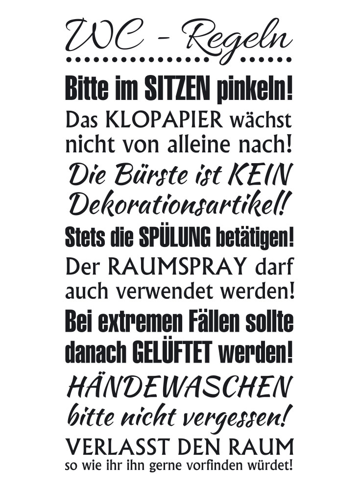 Wandtattoo "WC-Regeln"