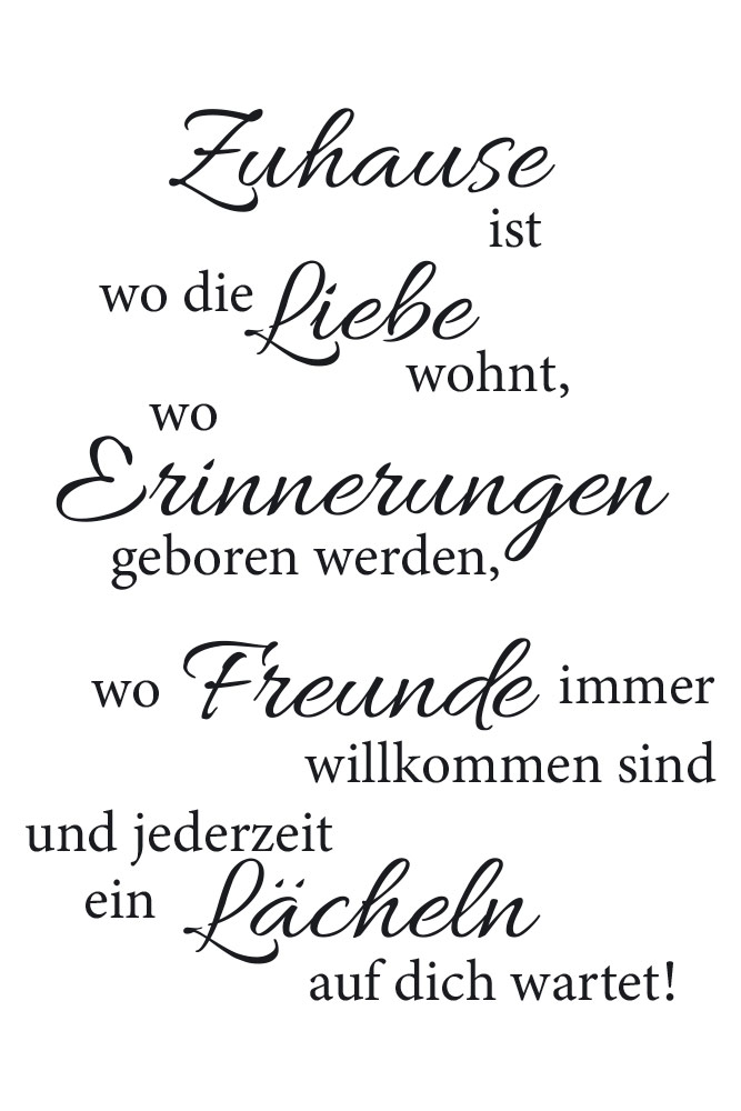 Wandtattoo "Zuhause ist wo die Liebe wohnt, wo Erinnerungen geboren werden, wo Freunde immer willkommen sind und jederzeit ein Lächeln auf dich wartet."